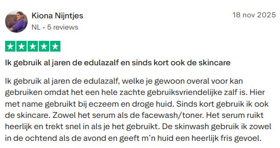 Edula® Skincare Serum is geschikt voor alle huidtypes, waaronder normale huid, droge huid, gevoelige huid en gemengde huid. Ook een rijpere huid profiteert van de intensieve verzorging en hydratatie.